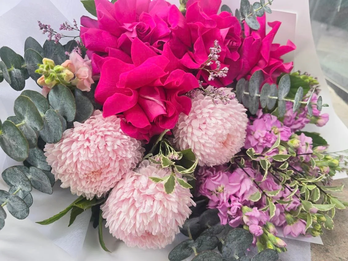 Please Note: Our florists use only the freshest blooms to create your arrangement, and while we strive to match the exact colours and varieties shown, seasonal availability may result in substitutions. Trust us to deliver a beautiful bouquet that exceeds your expectations. Wrapping paper colour and style may vary.
